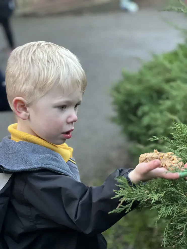 Our Pre-Reception pupils have been busy caring for nature by making bird food and carefully placing it in their garden. Through this hands-on activity, the children learned why birds need extra support, especially during colder months, and how small actions can make a real difference to wildlife.